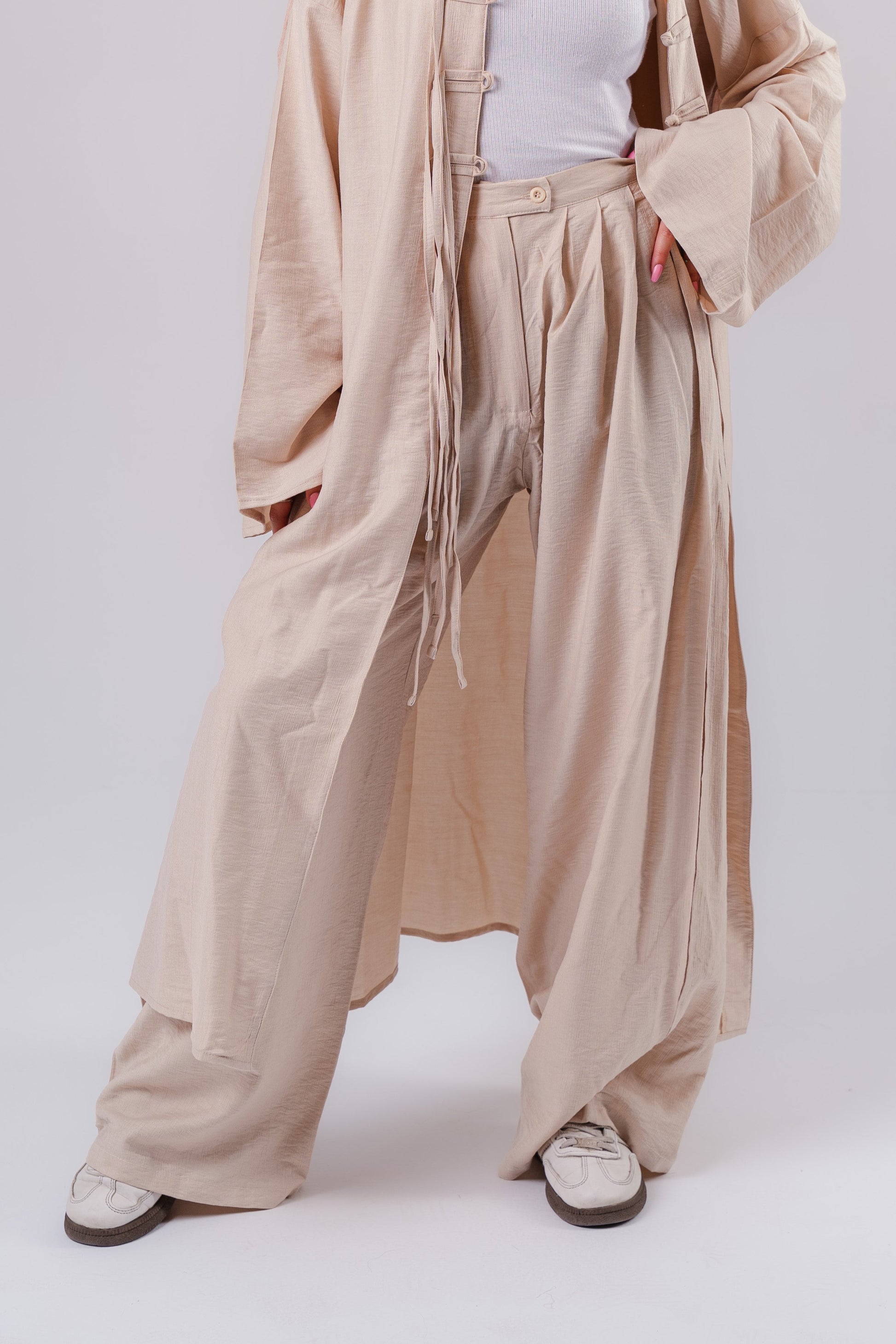 Beige High Low Pants