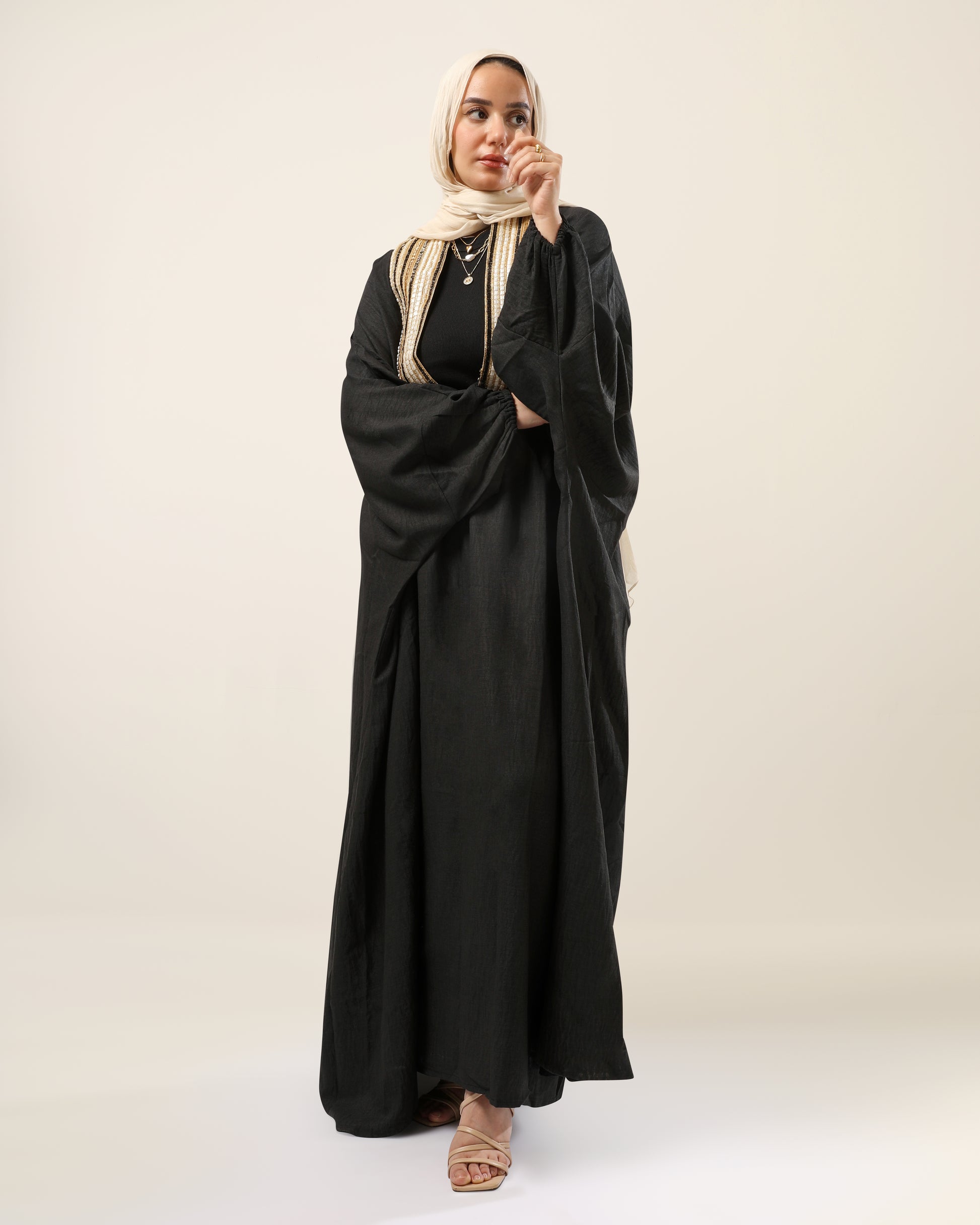 The Royal Linen Abaya and Skirt set offers an elegant blend of traditional design and modern sophistication. Made from high-quality linen, this ensemble ensures breathability and comfort while maintaining a refined silhouette. Perfect for formal occasions or everyday wear, the lightweight fabric and tailored fit provide ease of movement and a polished appearance. This set is an excellent choice for those seeking timeless style with a luxurious touch.
